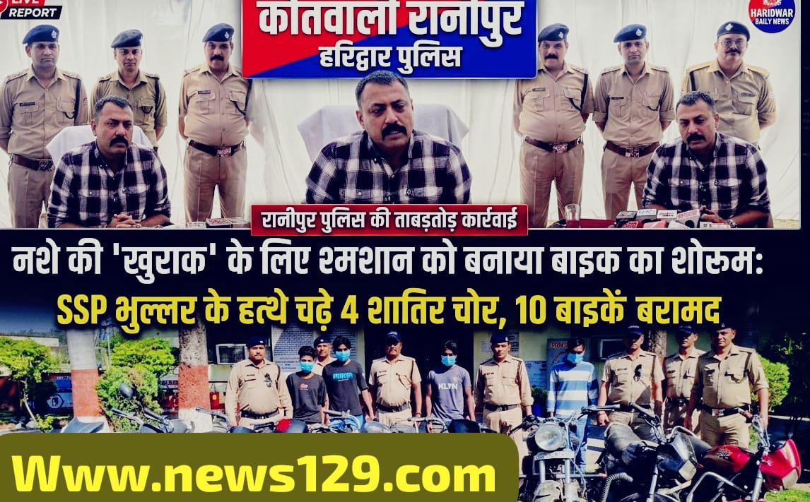 हरिद्वार। धर्मनगरी में अपराधियों की कमर तोड़ने के लिए एसएसपी नवनीत सिंह भुल्लर द्वारा चलाए जा रहे ‘जीरो टॉलरेंस’ अभियान के तहत रानीपुर पुलिस को बड़ी सफलता हाथ लगी है। एसएसपी भुल्लर के कुशल मार्गदर्शन और सटीक रणनीति का नतीजा रहा कि पुलिस ने एक ऐसे शातिर अंतरराज्यीय गिरोह का पर्दाफाश किया है, जिसने दिल्ली से लेकर हरिद्वार तक आतंक मचा रखा था। पुलिस ने गैंग के 4 सदस्यों को गिरफ्तार कर उनके कब्जे से चोरी की 10 मोटरसाइकिलें बरामद की हैं।