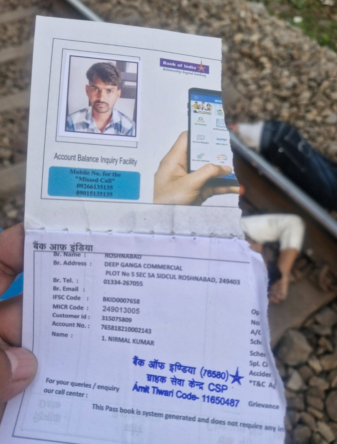 मोतीचूर उत्तम बस्ती के पीछे रेलवे ट्रैक।मृतक की पहचान: निर्मल (पुत्र राम सिंह), निवासी मिठनपुर, बिजनौर।