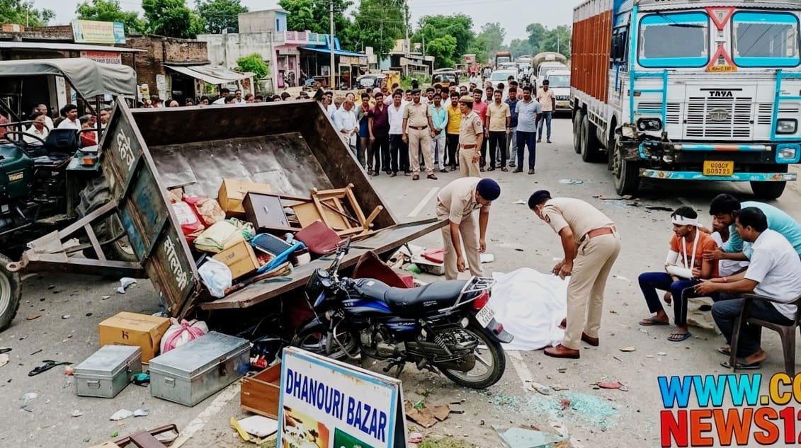 शादी की खुशियों के बीच पसरा सन्नाटा:-प्रत्यक्षदर्शियों ने बताया कि धनौरी बाजार के पास सड़क किनारे एक ट्रैक्टर-ट्रॉली खड़ी थी, जिसमें एक विवाह समारोह के लिए दहेज का सामान लादा जा रहा था। खुशियों का माहौल था, लेकिन तभी पीछे से काल बनकर आए एक तेज रफ्तार ट्रक ने ट्रॉली को जोरदार टक्कर मार दी। टक्कर इतनी जबरदस्त थी कि भारी-भरकम ट्रॉली पलट गई।